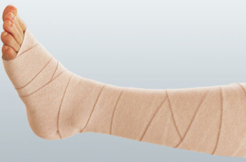 · 1° strato: benda assorbente in viscosa, simile al cotone di Germania ma più morbida. Tecnica di bendaggio: a spirale